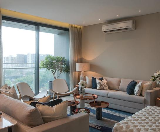 In our spacious 4 BHK apartments with balconies, enjoy the expansive views of the greens as well as the cityscape. Prisma by Oberoi Realty also offers lush landscaping throughout the development. Located on the arterial Jogeshwari Vikhroli Link Road (JVLR), it facilitates quick connectivity. With every detail planned keeping you in mind, Prisma encapsulates contemporary aesthetics and indulgent amenities and fulfils the promise of an elevated lifestyle.